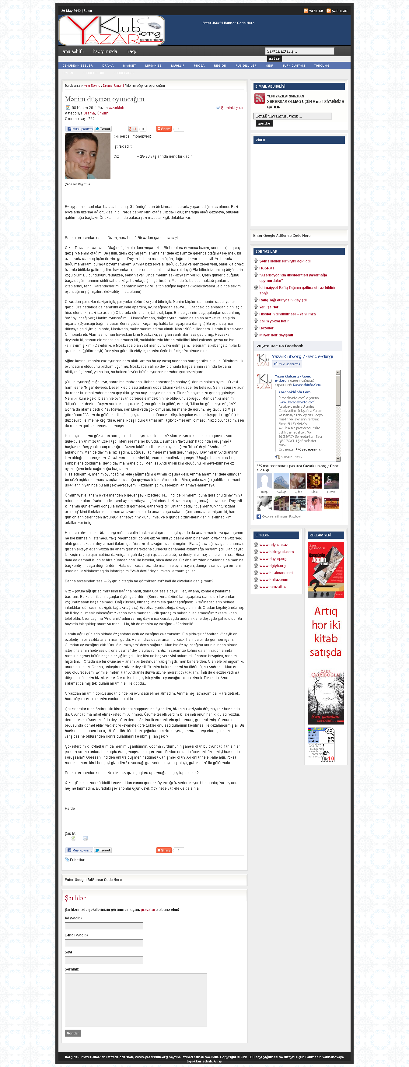 П.С. Под патронажем Милли Меджлиса в Азербайджане, в 2011-м году проводился Первый Всереспубликанский театральный фестиваль для детей и молодежи на тему патриотизма. В рамках фестиваля постановка этой пьесы оказалась в числе победителей. Правда, при этом режиссер несколько видоизменил финал.