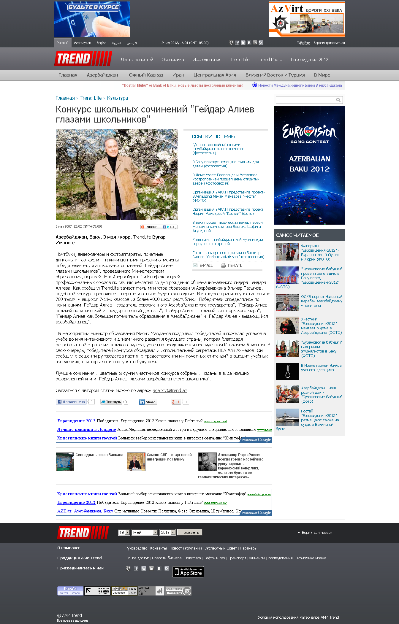 "Ноутбуки, видеокамеры и фотоаппараты, почетные дипломы и портфели – такими ценными призами отмечены победители конкурса школьных сочинений «Гейдар Алиев глазами школьников»... В конкурсе приняли участие свыше 700 тысяч учащихся 7-11-х классов из более 4000 школ республики. Победители определялись по номинациям :
